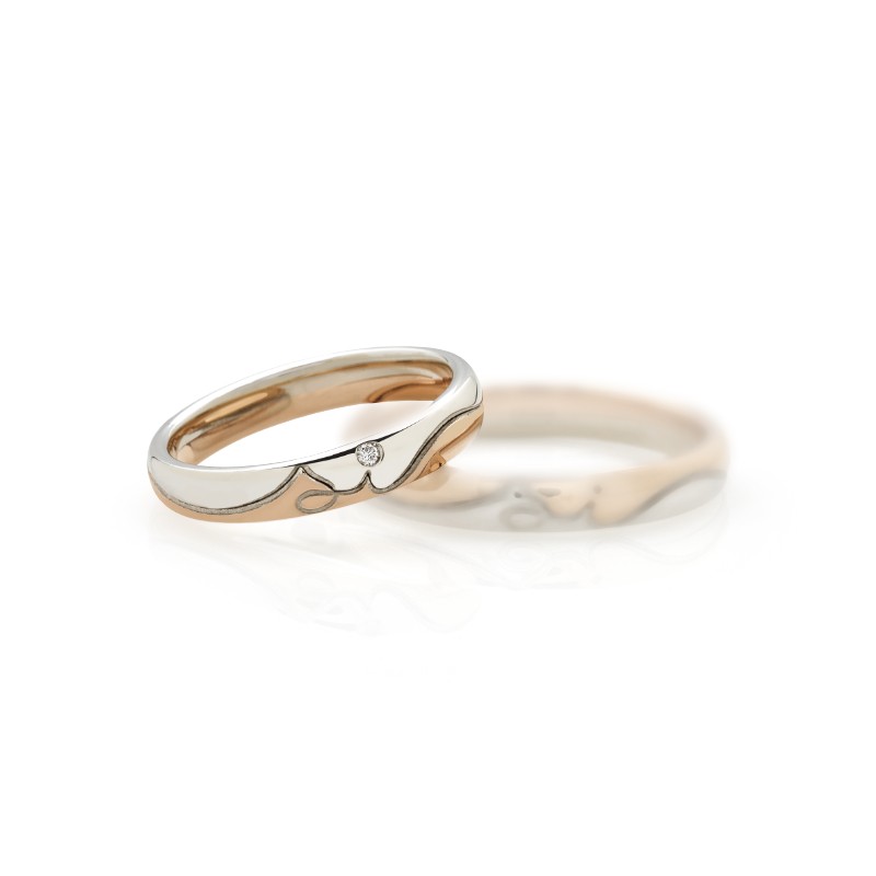 Fede nuziale in oro bianco e rosa con diamanti