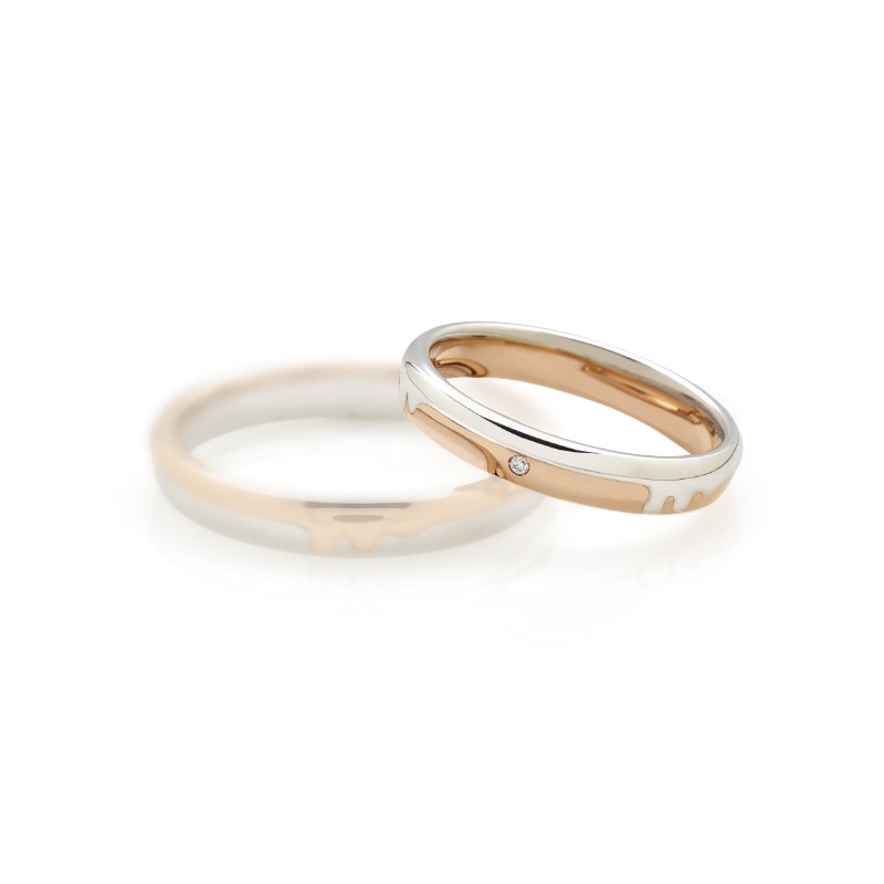 Fede nuziale in oro bianco e rosa con diamanti
